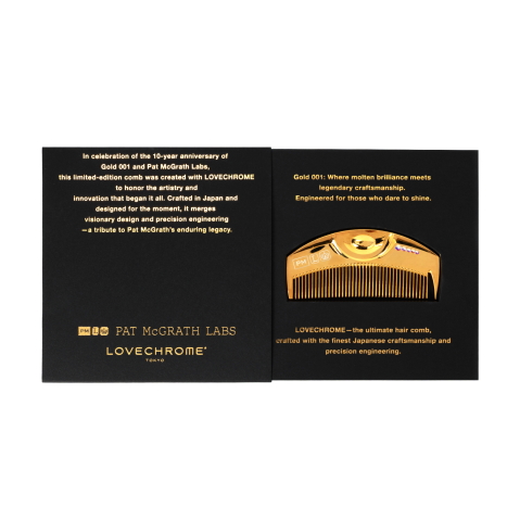 しなやかな光沢とミニマルな曲線が印象的なこのモデルは、LOVECHROME®の技術力の象徴である24金コーティングのコームに、PAT McGRATH LABSのアイコニックなロゴを刻印。