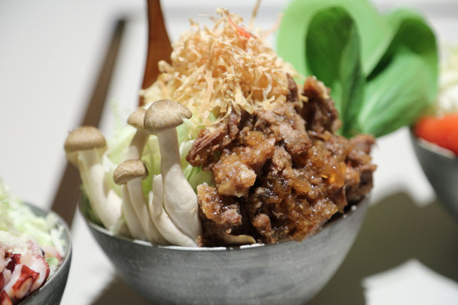 参:(こぼれる具材)器から“こぼれる”ほど豪快に盛り付けられた具材。目にも楽しく、テーブルに並ぶだけで心が弾みます。