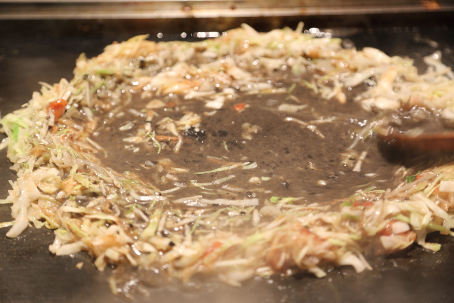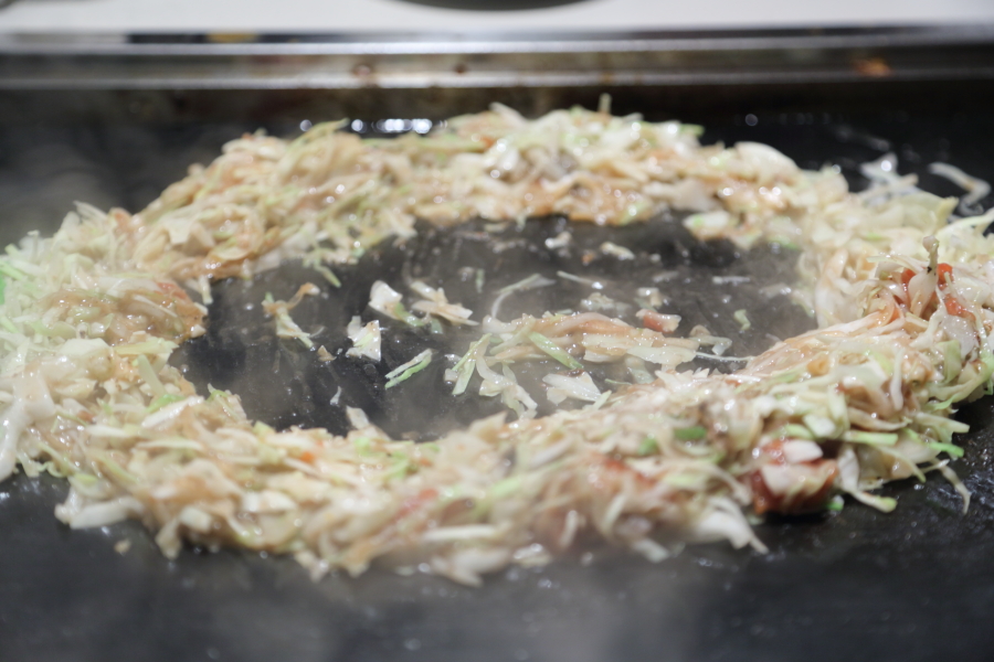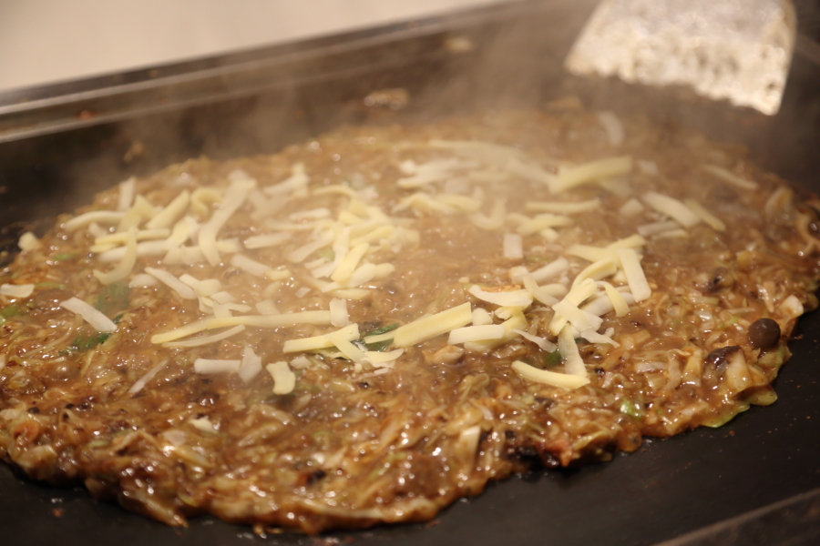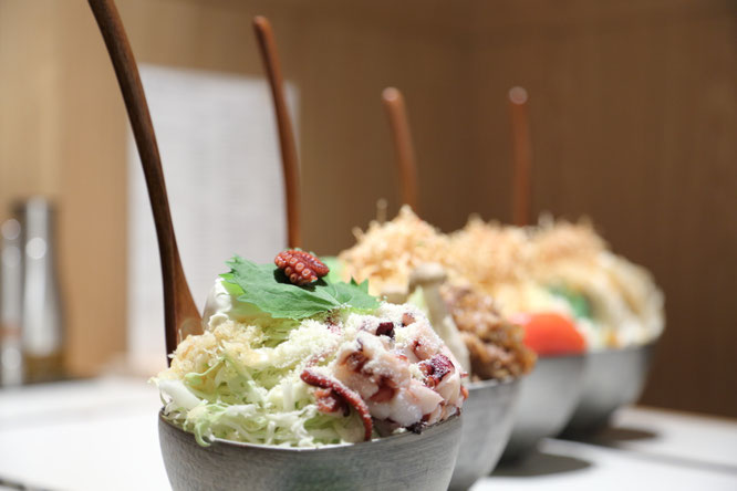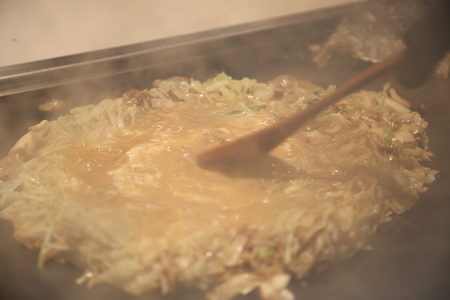 伍:(天かす)ミシュラン・ビブグルマン掲載店「天ぷら阿部」の白ごま油で仕上げた揚げ玉を使用。香ばしく、もんじゃに軽やかなコクを与えます。