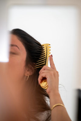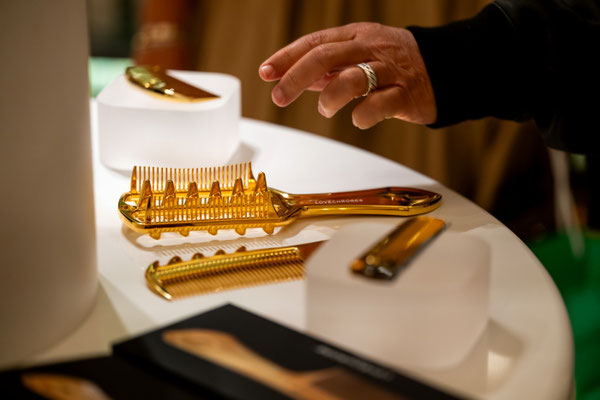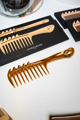 ブランドを象徴するのは、24K ゴールドコーティングが施されたヘアコーム。