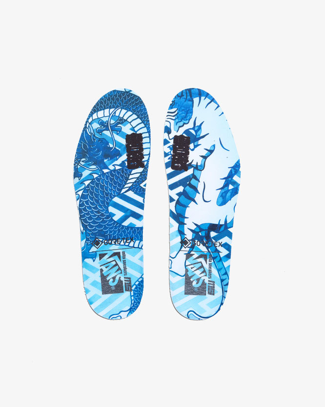さらに、暗闇で光を放つサイドストライプ、龍と虎を描いたインソール&アウトソールのグラフィック、